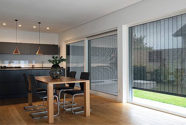 Alt und Jung unter einem Dach: in einer ruhigen, ländlichen Gegend in der Region Stuttgart, entstand 2019 das charaktervolle und energieeffiziente Mehrgenerationendomizil. Das Haus wurde in Holzbauweise und energiesparenden Eigenschaften errichtet und ist so eng mit dem Nachhaltigkeitsgedanken verbunden. Für einen windstabilen und effizienten außenliegenden Sonnenschutz sorgt der MHZ Metallbehang s_onro aus Aluminium, der zusätzlich durch seine Ästhetik und seinen nachhaltigen Charakter überzeugt.