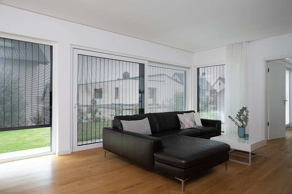 Hohe Transparenz in der Durchsicht von Innen nach Außen durch einen Öffnungsanteil von ca. 21 %.