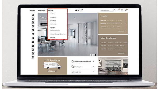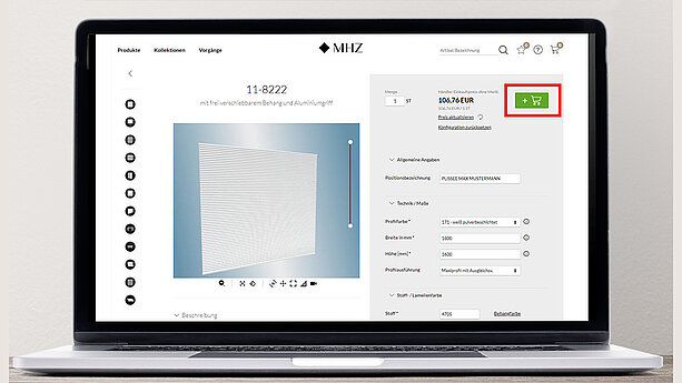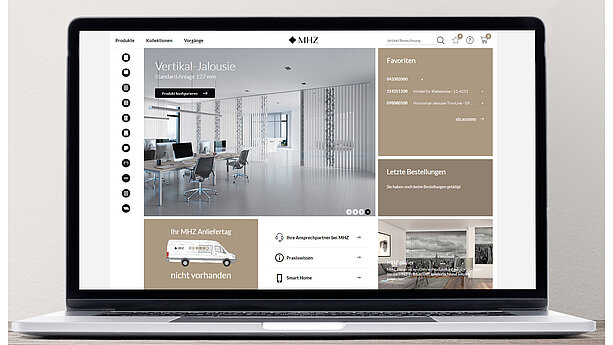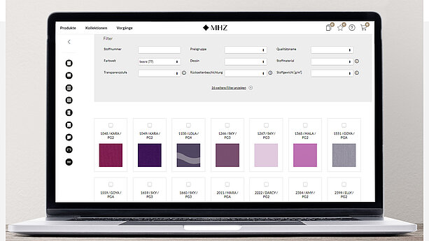 Das Tool dient als Onlineshop und soll Ihnen den Arbeitsalltag erleichtern: Verwalten Sie Ihre Bestellungen und Vorgänge von der Konfiguration und Stoffrecherche über Auftragsbestätigungen und Lieferstatus bis hin zu Umsatzübersichten der vergangenen Jahre.