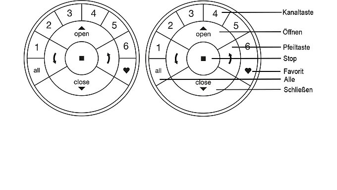 Eine Fernbedienung kann bis zu sechs verschiedene Gruppen von Anlagen steuern (Kanaltasten 1 – 6). Mit der folgenden Anleitung weisen Sie eine Anlage dem Kanal 1 zu. Sollten Sie hier eine andere Kanalnummer wünschen, können Sie natürlich auch diese verwenden.