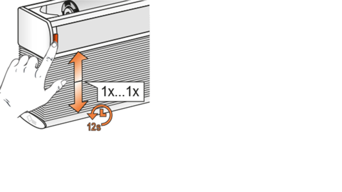Der Motor wird dann anhalten, sobald die Kopfschiene von der Anlage berührt wurde.