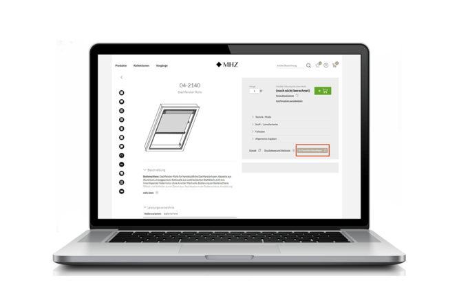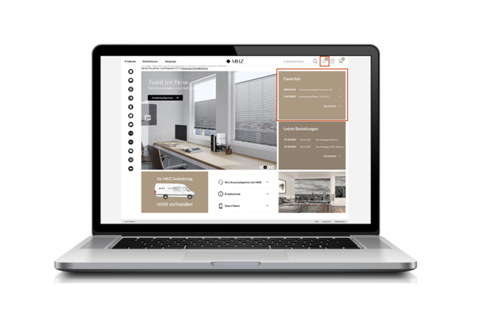 Die Favoriten Funktion hilft Ihnen dabei, schnell und effizient die gewünschten Produkte, egal ob Behänge oder Zubehör, zu konfigurieren und als Bestellung aufzugeben. Speichern Sie sich im Favoriten-Tab auf der Startseite bis zu drei häufig zu bestellende Positionen ab, um diese im nächsten Schritt mit wenigen Klicks dem Warenkorb hinzuzufügen.