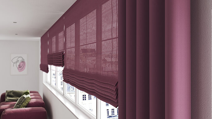 Beide Produkte lassen sich mit weiteren Sicht- und Sonnenschutzlösungen wie Raffrollos, Plissees, Jalousien, Rollos und vielen mehr kombinieren.
