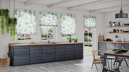 Großformatige Motive, hochwertige Stoffe und ausgewählte Farben – die MHZ Kollektion für DUETTE® Wabenplissees verleiht Räumen eine moderne, wohnliche Atmosphäre.