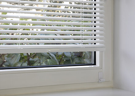 Das Fenster neben der Haustür lässt ordentlich Licht in den Eingangsbereich von Eva-Maria. Während sie Licht liebt, schätzt sie auch ihre Privatsphäre, sodass nicht jeder sofort ungehindert ins Haus hinein schauen kann. Nach längerer Recherche hat sie sich dann für den Einsatz unserer Jalousie TwinLine entschieden. Die Jalousie lässt sich flexibel nach oben und unten verschieben und sorgt so entweder für Schutz vor neugierigen Blicken oder den freien Einfall von Tageslicht. Der Clou: Über einen minimalistischen Drehgriff am oberen und unteren Teil der Anlage kann die Stellung der Lamellen individuell reguliert werden.