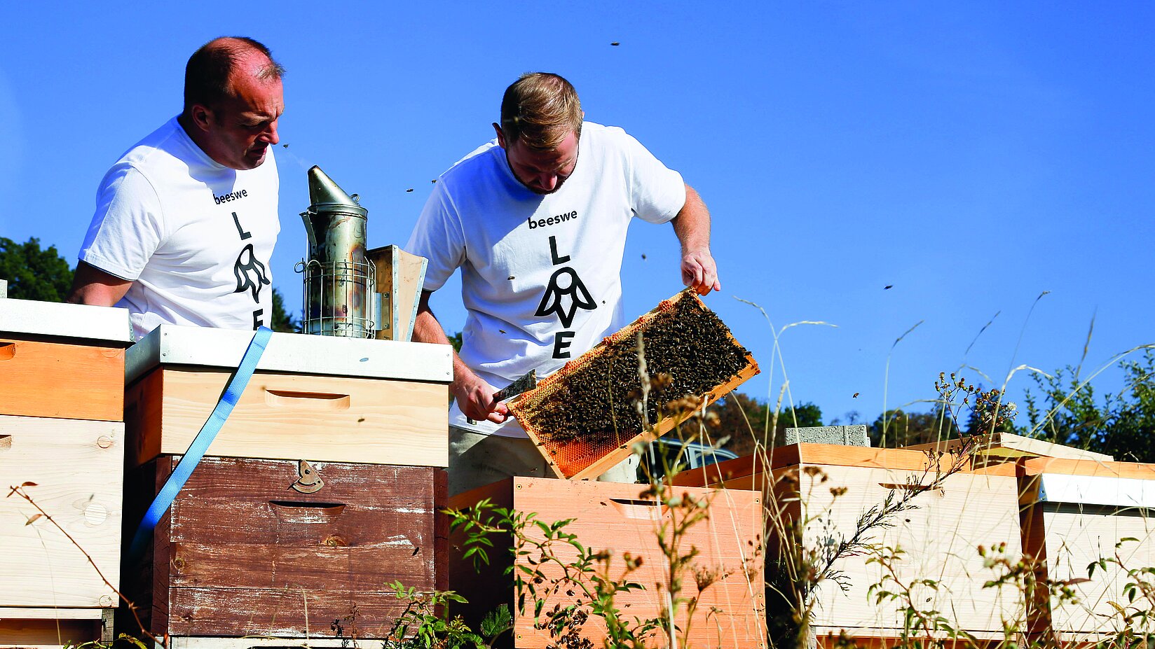 Bienen sind klein – ihr Beitrag für unsere Umwelt ist riesig. Deshalb setzen wir uns aktiv für den Erhalt von Bienen und ihrer Lebensräume ein. Mit der Teilnahme an dem Projekt beeswe.love übernehmen wir für ein ganzes Jahr die Patenschaft für ein Bienenvolk und tragen Verantwortung für mehr Nachhaltigkeit und Bewusstsein im Alltag.