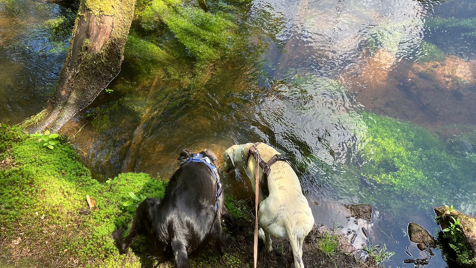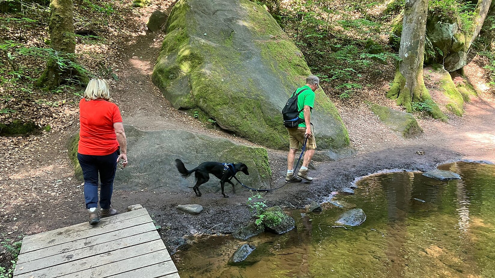 Am nächsten Morgen ging es nach dem Frühstück bei strahlendem Wetter in die Karlstalsschlucht, die wunderbar Schatten und dazu noch mit dem Bach Moosalbe viel Spaß für die zweibeinigen und vierbeinigen Wanderinnen und Wanderern bot. Während der abwechslungsreichen Wanderung, vorbei an schönen Rasthäusern und ehemaligen Wassermühlen, konnten sich die Teilnehmenden über verschiedenste (hundebezogene) Themen, aber natürlich auch über die Planungen für Folgeabenteuer austauschen.