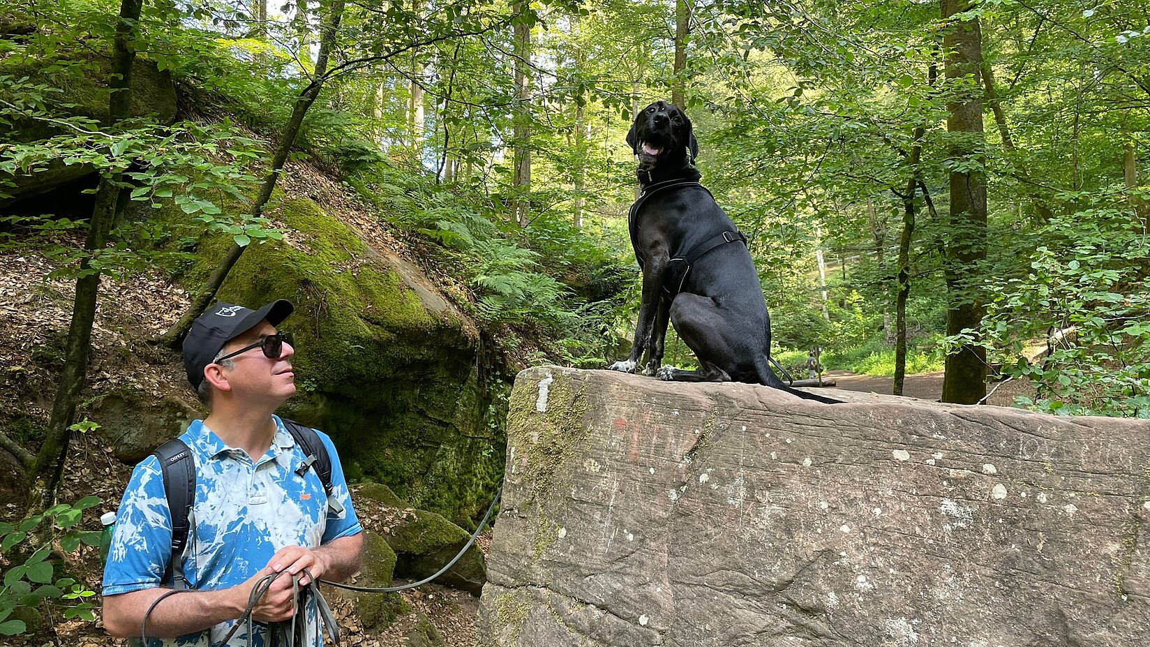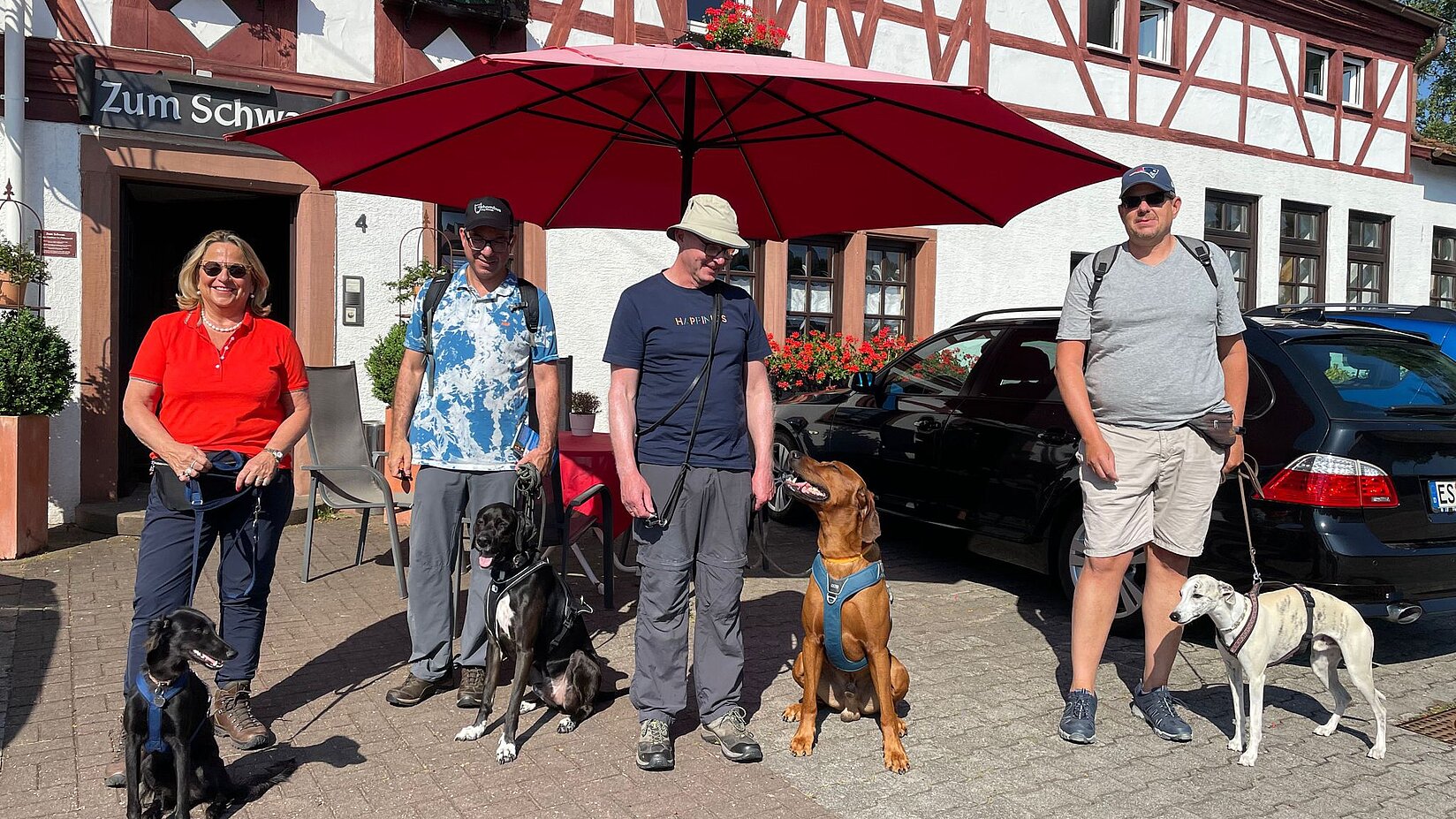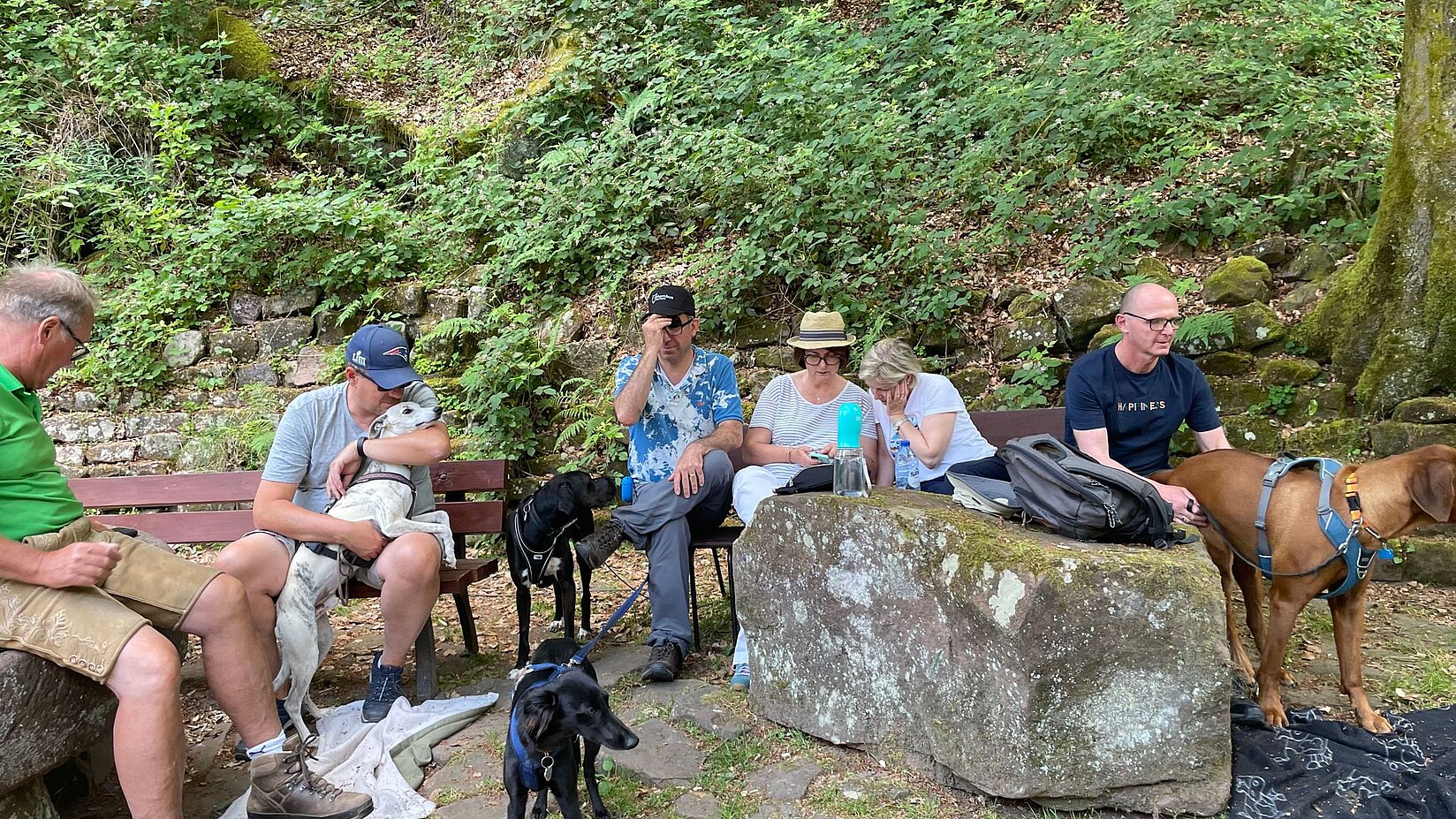 Vier Hunde und 7 Teilnehmende aus Benelux, Niederstetten und Musberg, aus Vertrieb, Entwicklung, Werken und Unterstützungsprozessen, trafen sich am 23. Juni 2023 in Trippstadt im Pfälzerwald. Das gemeinsame Kennenlernen war schnell erfolgreich abgeschlossen und das neu gebildete Rudel machte einen kleinen Abendspaziergang. Das Ziel: Ein gemeinsames Abendessen um Energie für die Wanderung am Samstag zu tanken.