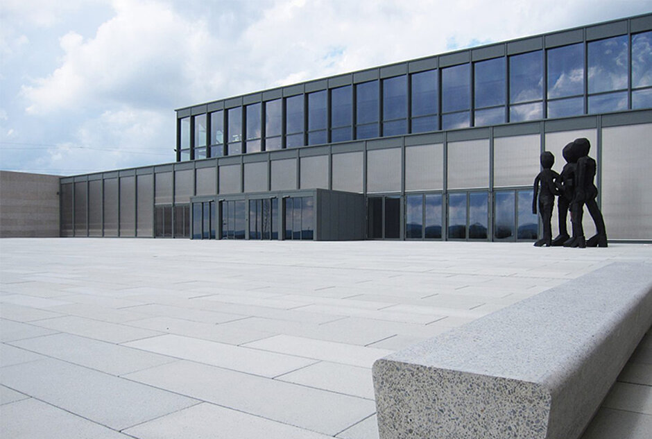 As a culture and congress center, the building offers a music hall with 600 seats and an event center that accommodates 2,500 visitors. Up to 10,000 spectators can come together on the adjacent open-air area. The bright, spacious foyer, the large glass fronts and the picturesque location on an open meadow landscape give the Carmen-Würth-Forum space and vision.