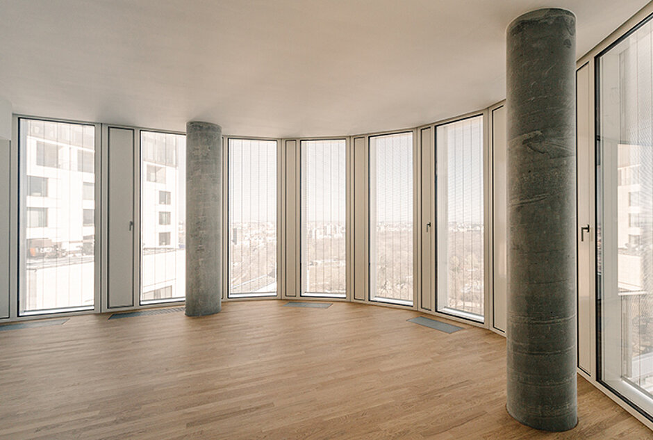 The s_enn metal blind supplements the building in its aesthetic appeal. As the stainless steel blind is designed to be extremely stable in the wind, it provides efficient sunshade even on high buildings. With its high level of transparency, it ensures utmost visibility through to the outside.