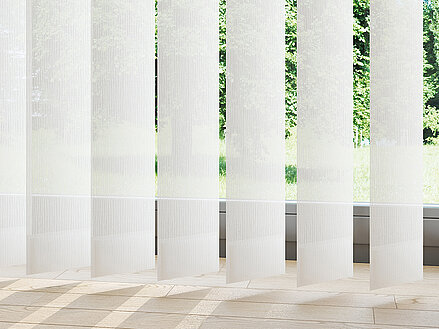 Modern vertical blinds are available in many different designs with a variety of motifs and colours – from translucent to opaque.