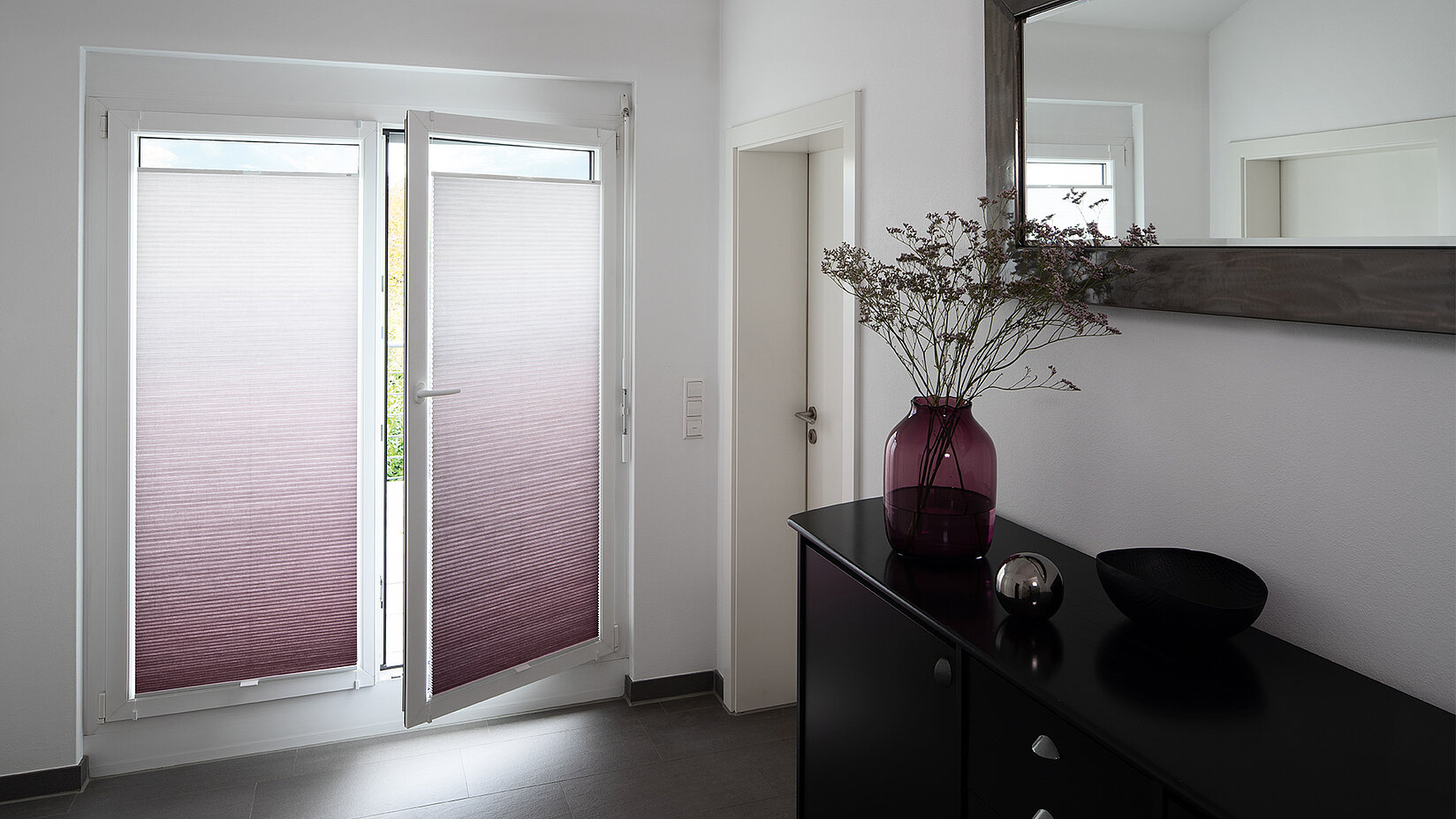 Large-scale motifs, high-quality materials and choice colours – the MHZ collection for DUETTE® honeycomb blinds gives rooms a modern, homely atmosphere.